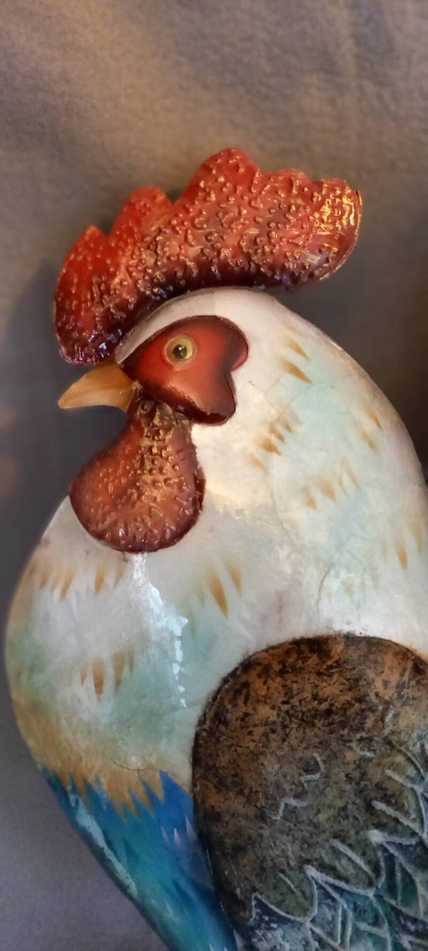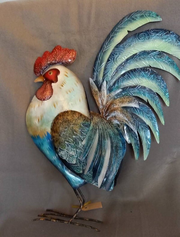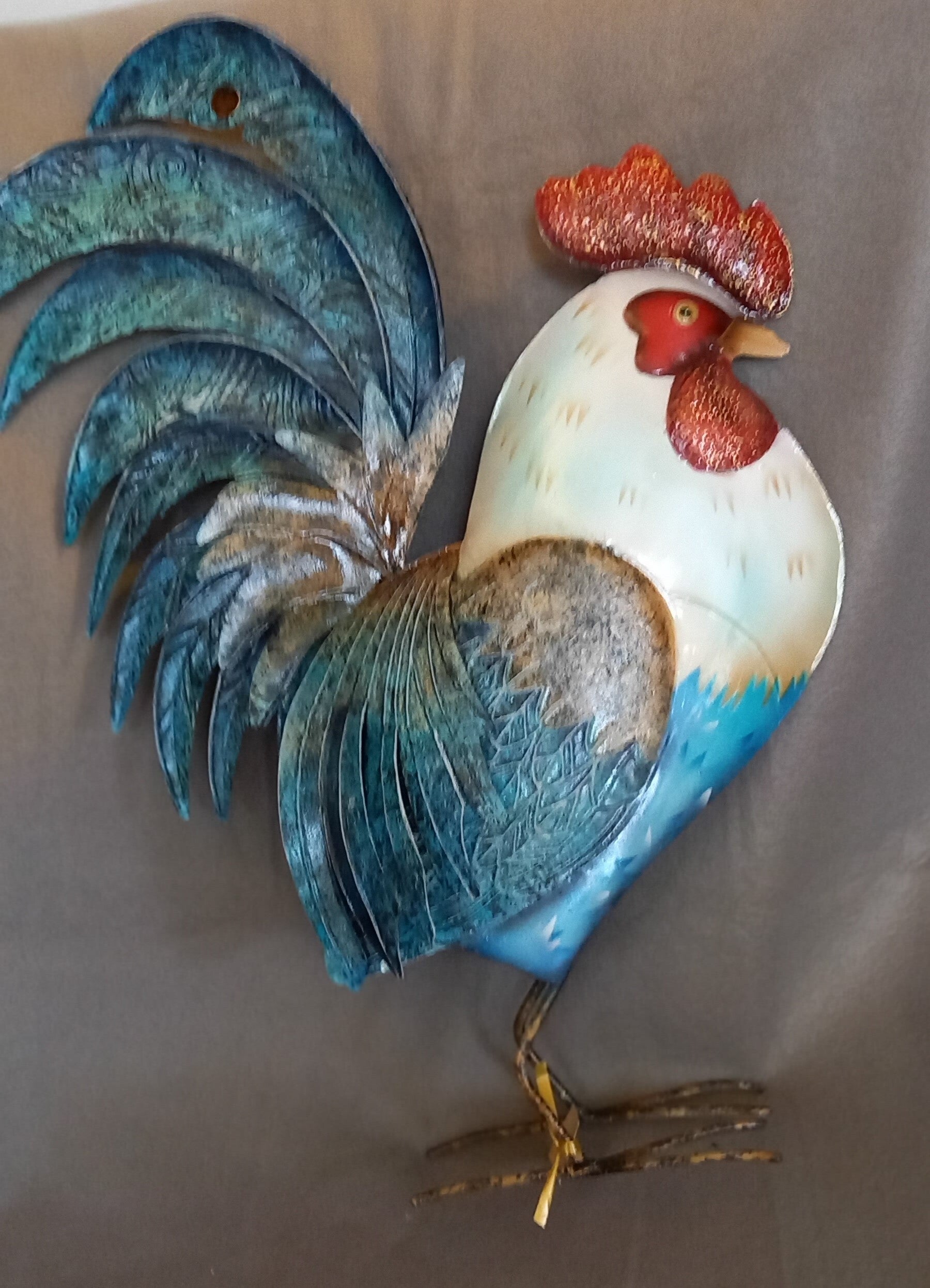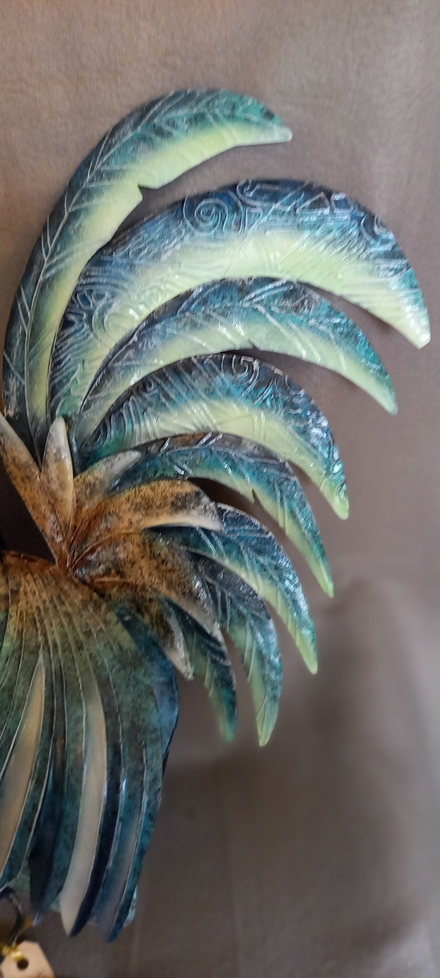 Trotse haan van gerecycled metaal in sprekende kleuren