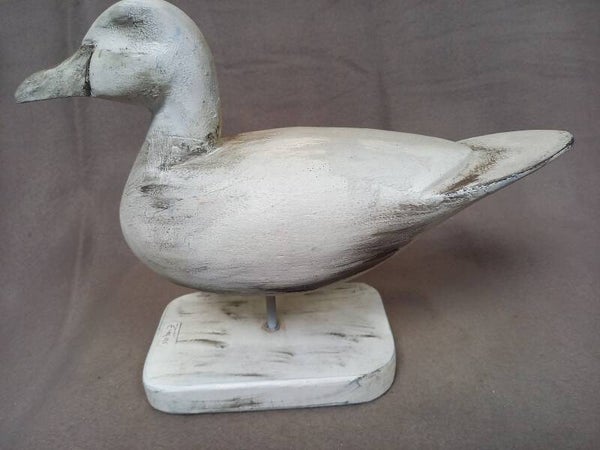 Deze leuke eend is handgesneden uit hout.