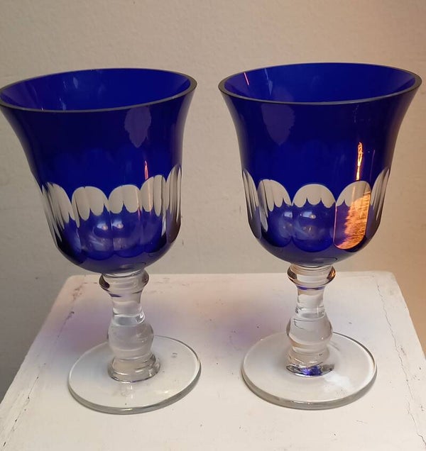 Wijnglazen van facet geslepen glas in blauw