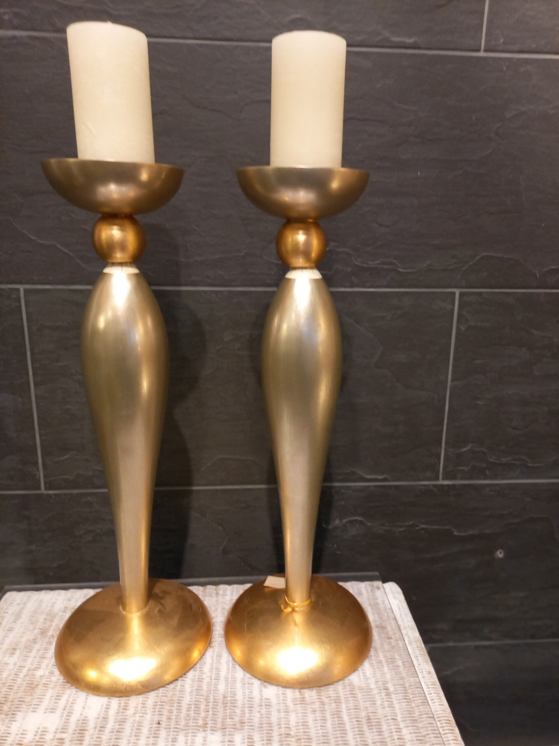Stijlvolle kandelaar in zilver met goud voor cilinderkaars