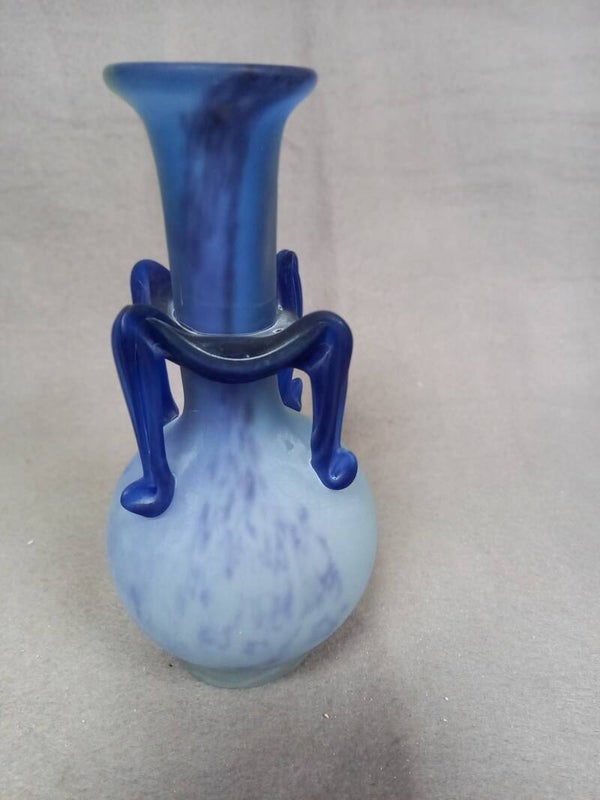 Dit kleine vaasje heeft een smalle hals en een vrij