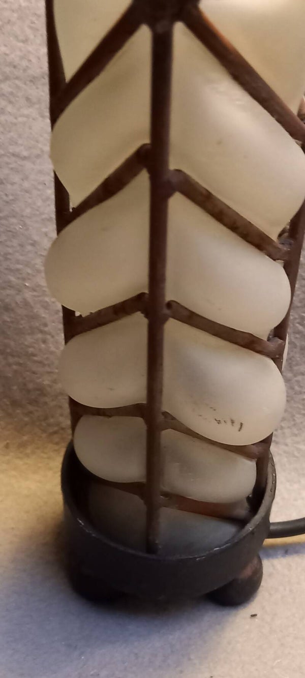 echt handwerk is. Het gesatineerde glas in het frame is op het metalen voetje geplaatst, met daarin een schakelbord lampje met E14 fitting.