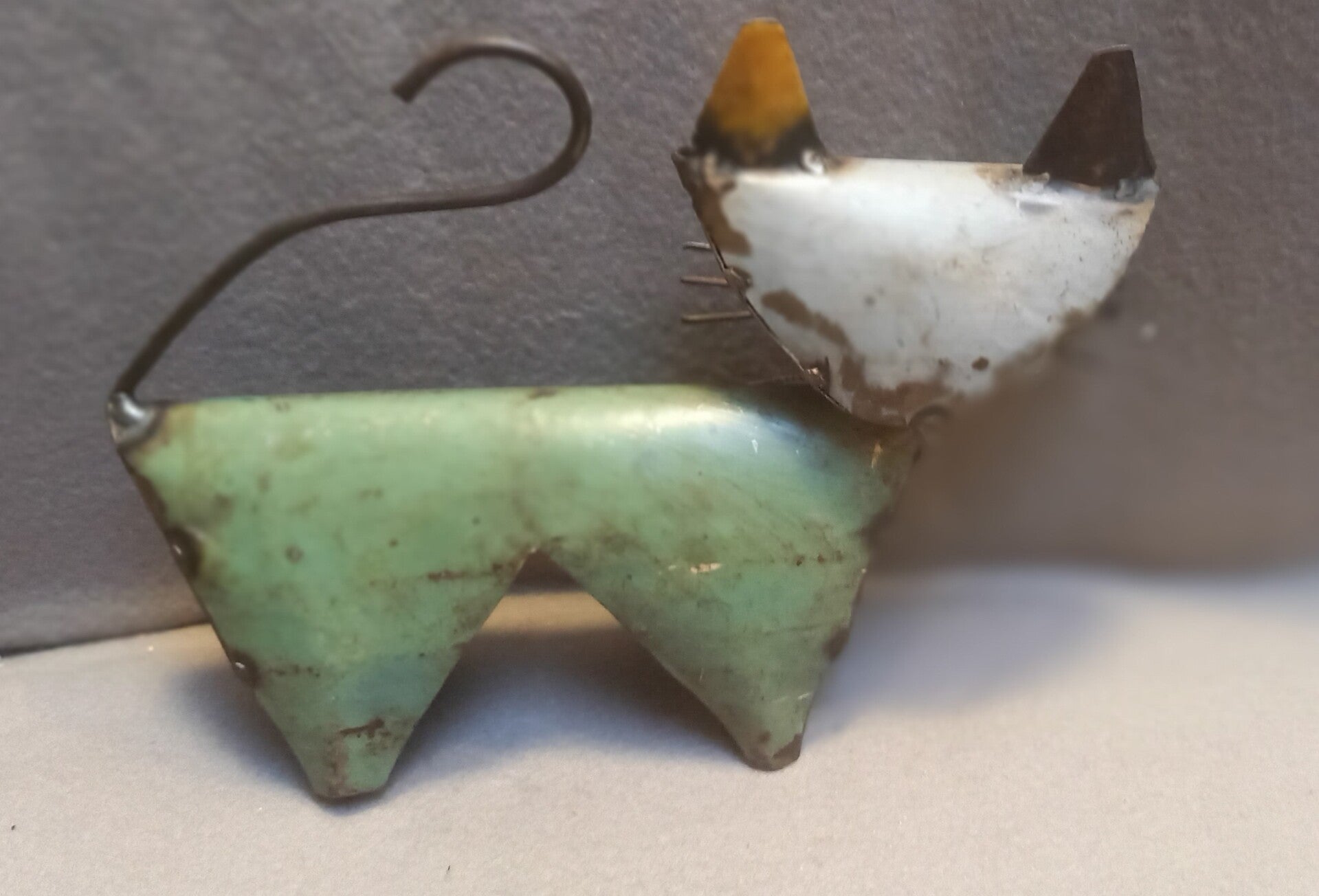 Deze leuke poes is gemaakt van gerecycled metaal,