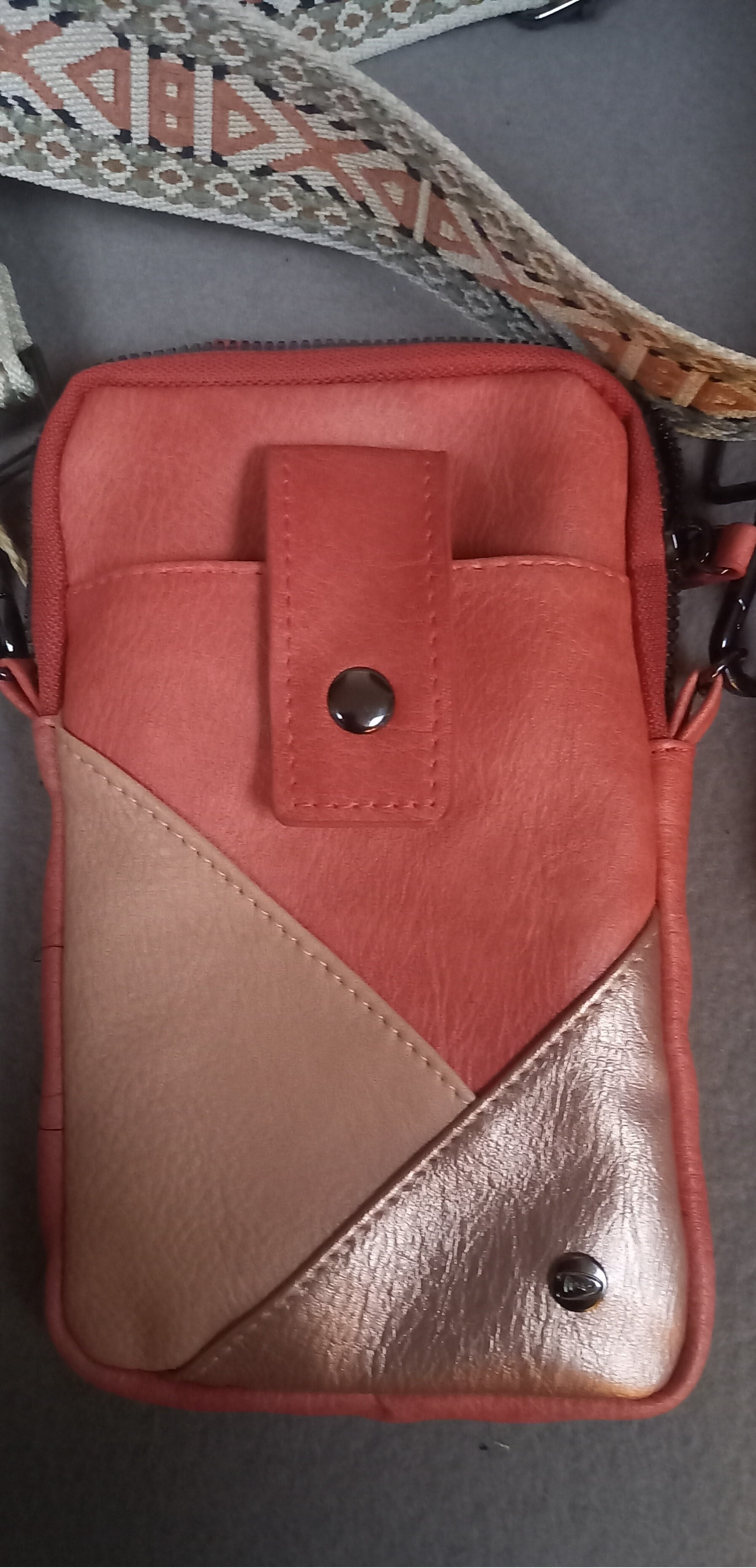 Telefoon tasje in zalmkleurig kunstleer