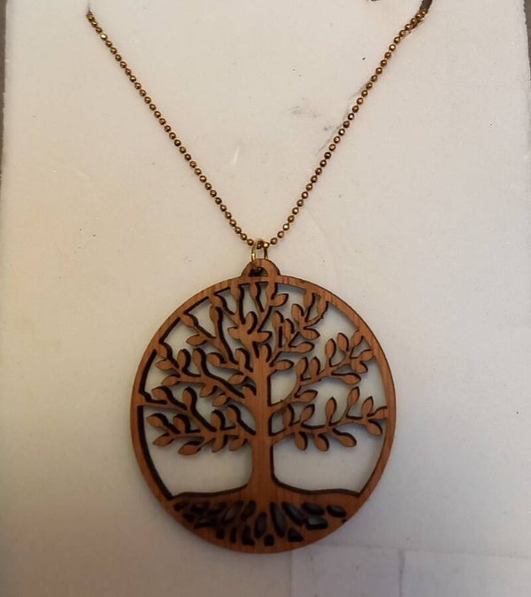 Collier met houten hanger van levensboom