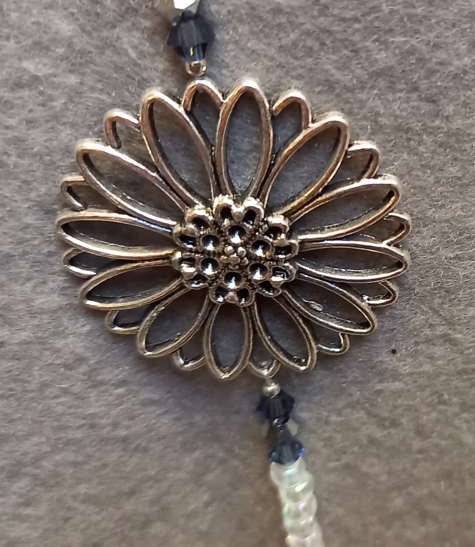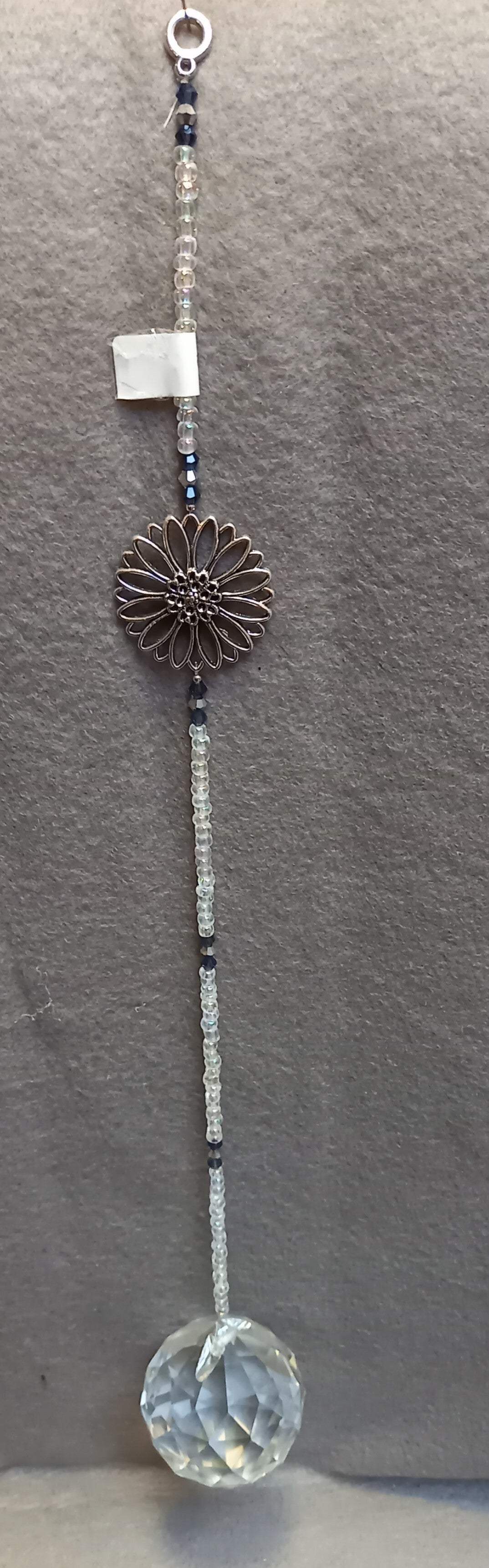 Raamhanger met zilverkleurige bloem en kristallen bol