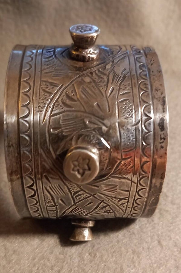 Afmeting: Diameter 7,5 cm. 5,5 cm. breed,