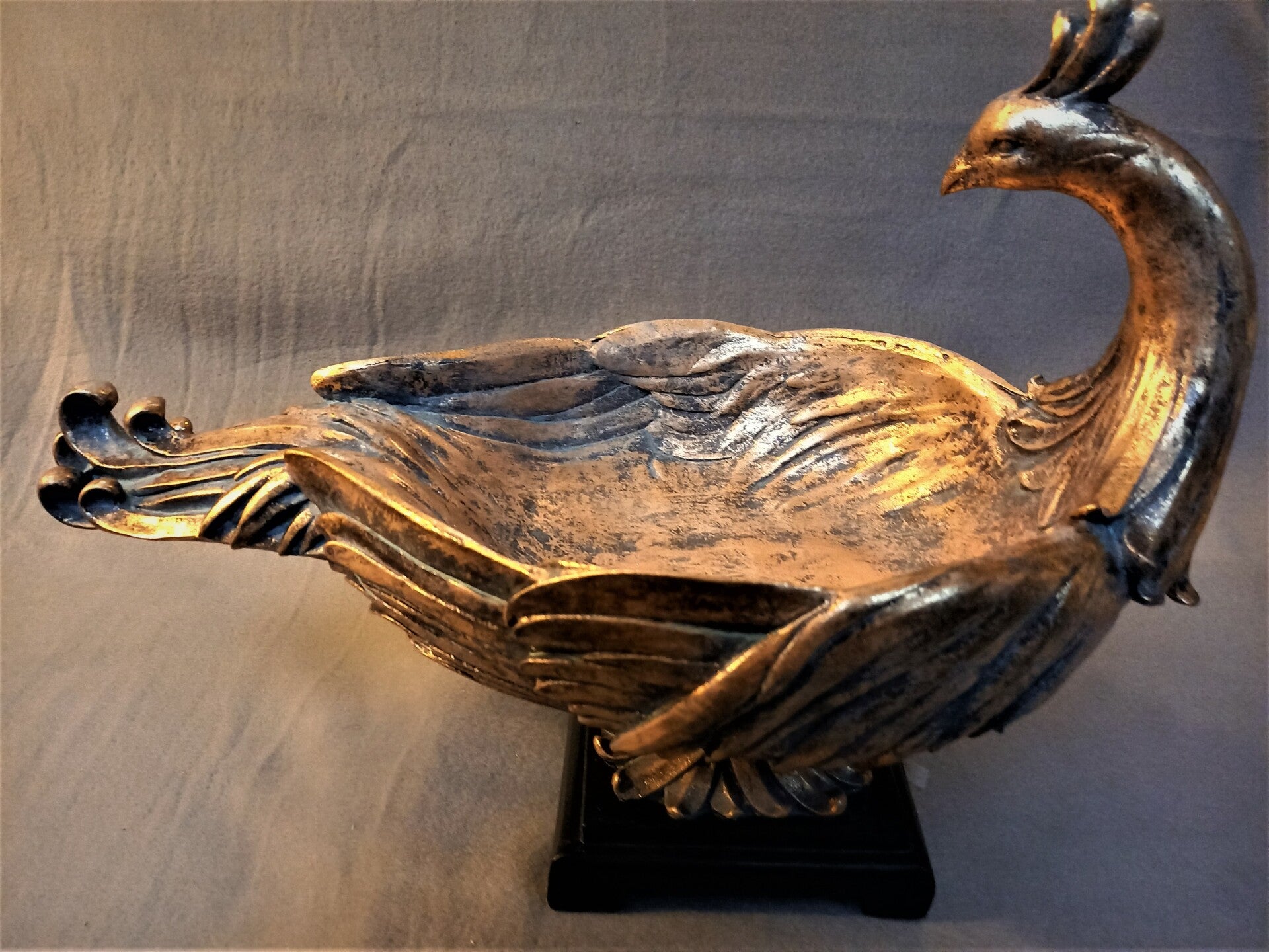 Pauwschaal op voet verguld