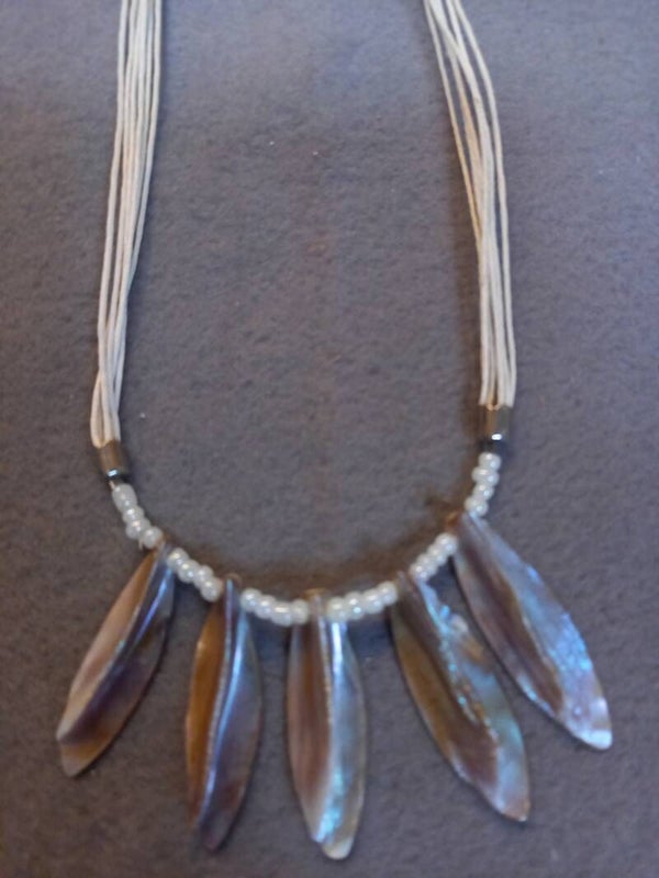 Dit bijoux is gemaakt van 5 stukken parelmoer schelp