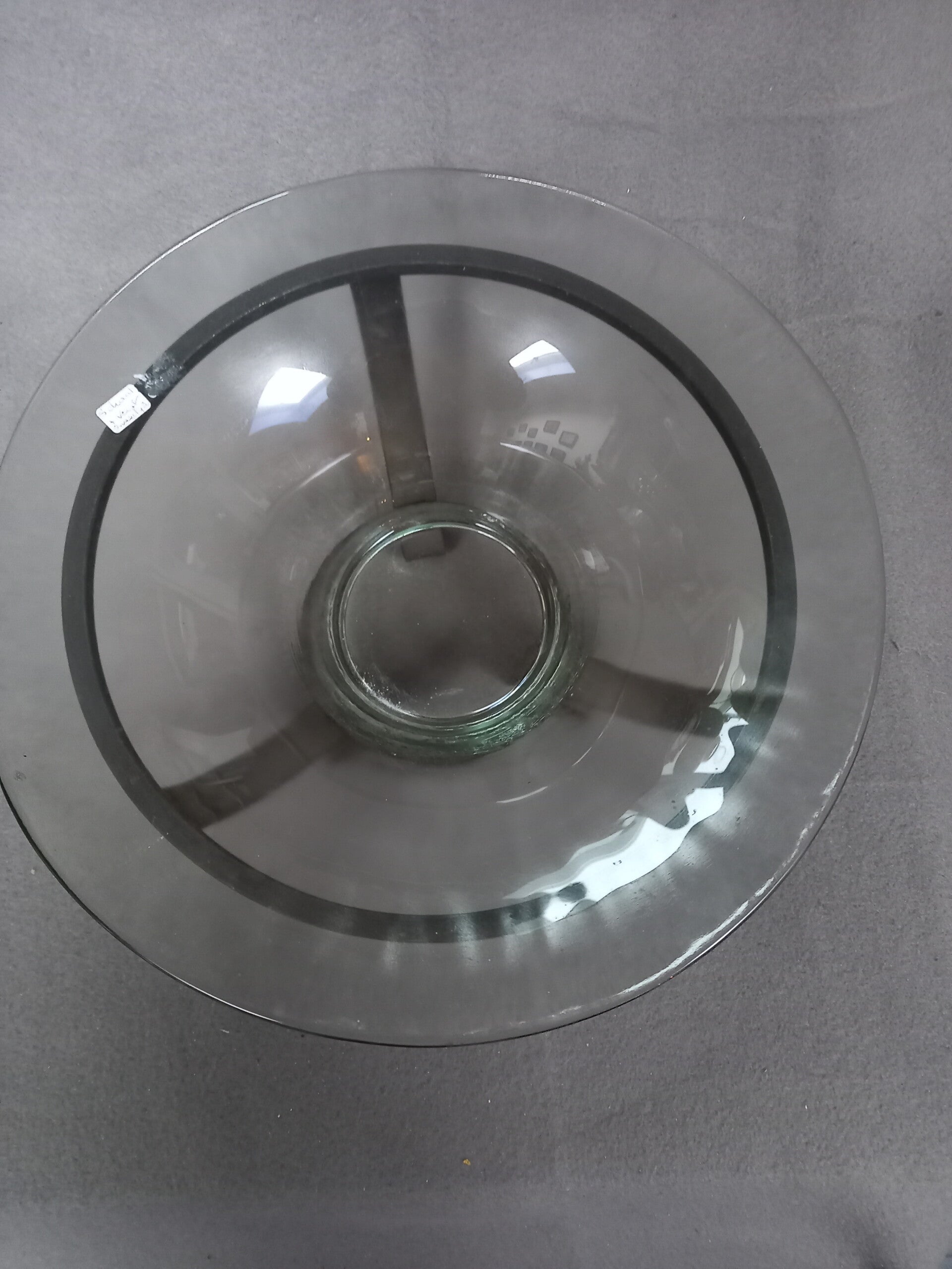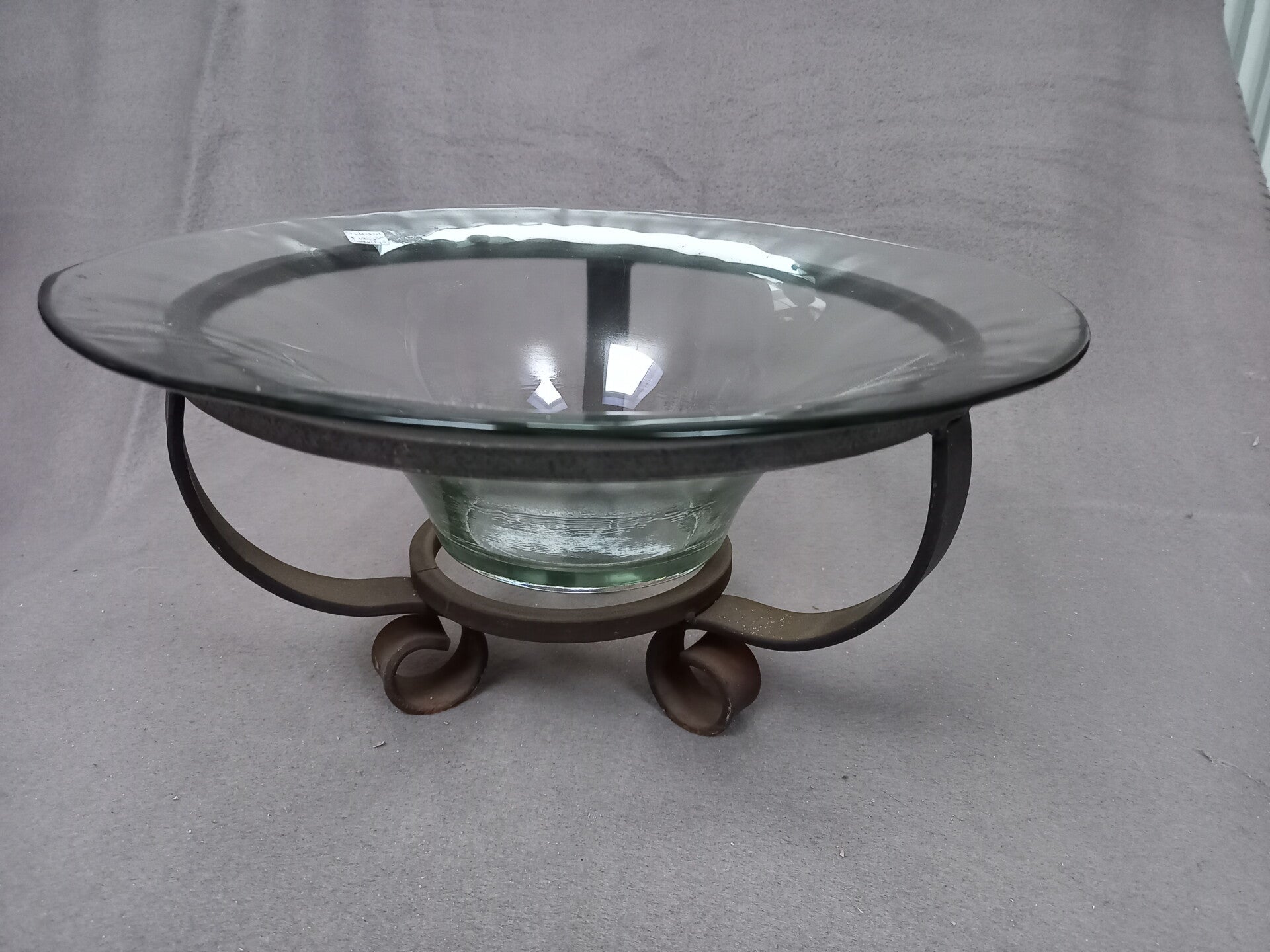 Deze glazen schaal ligt los in de smeedijzeren voet.