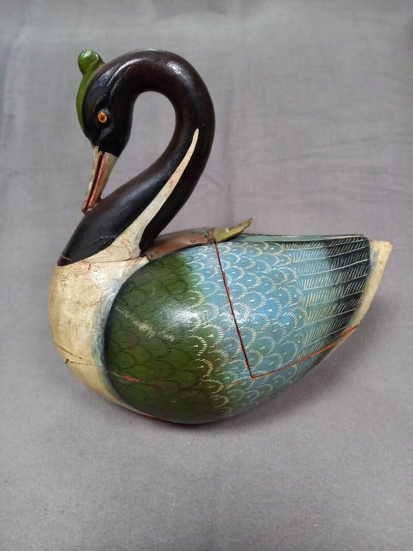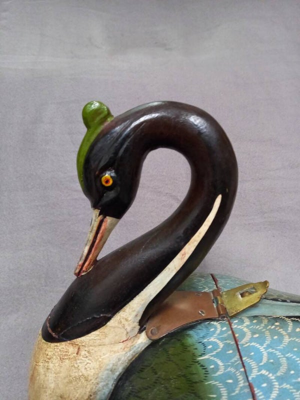 Deze sierlijke houten zwaan is uitgesneden uit