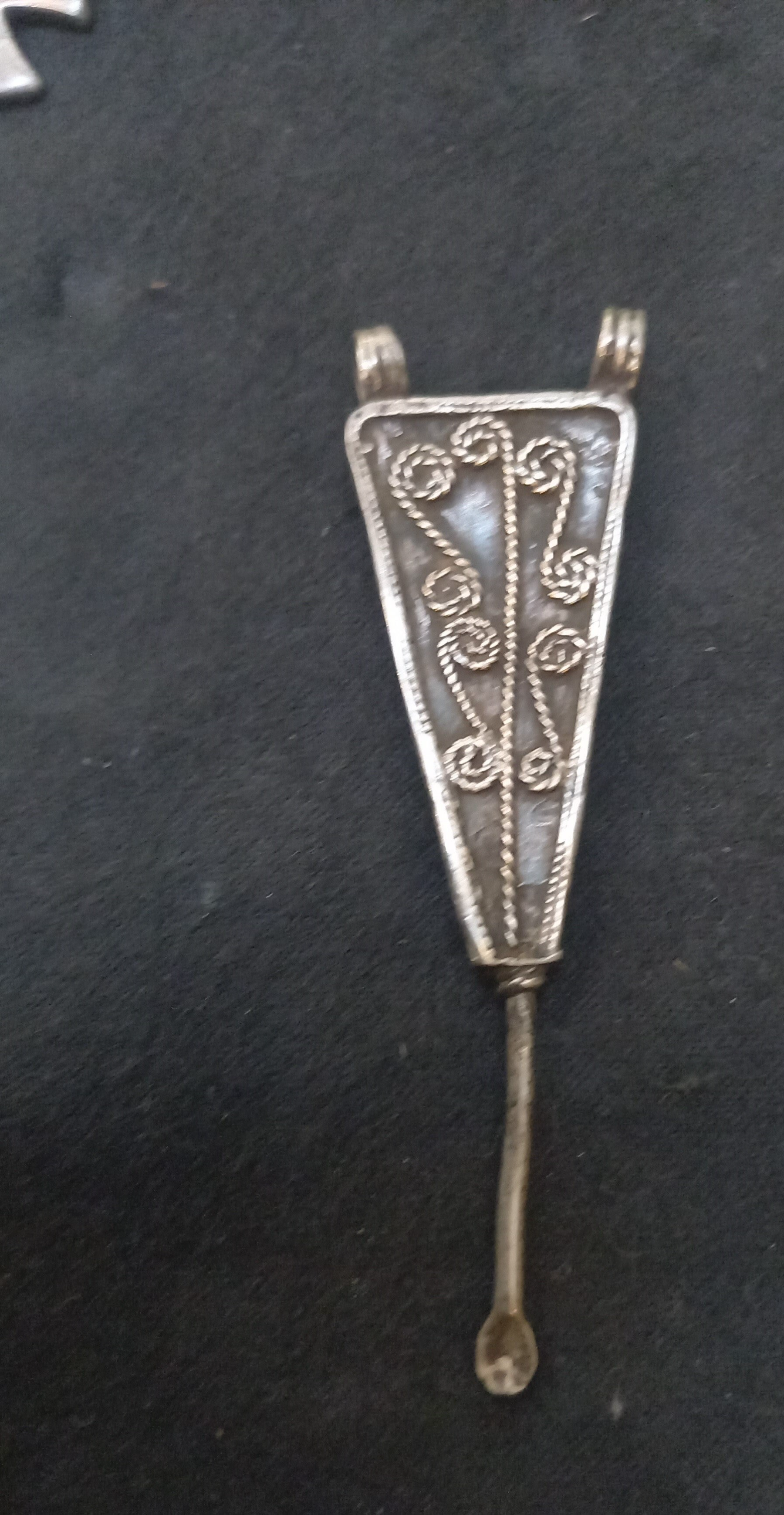 Deze oude oorlepel heeft fraaie ronde versieringen