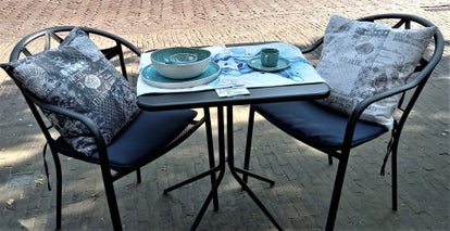 Kussens, tafelkleden e.d. voor buiten en metalen tuinbeelden